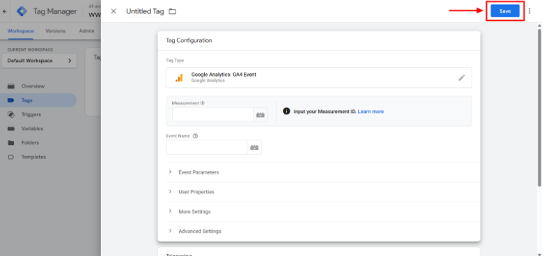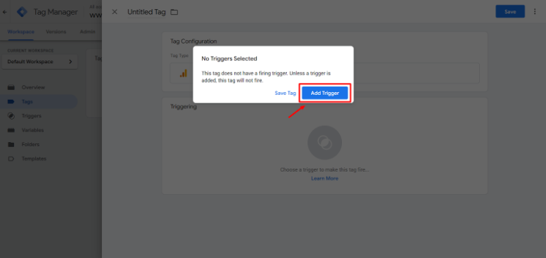 After configuring your tags and variables, click “Add Trigger” to proceed.