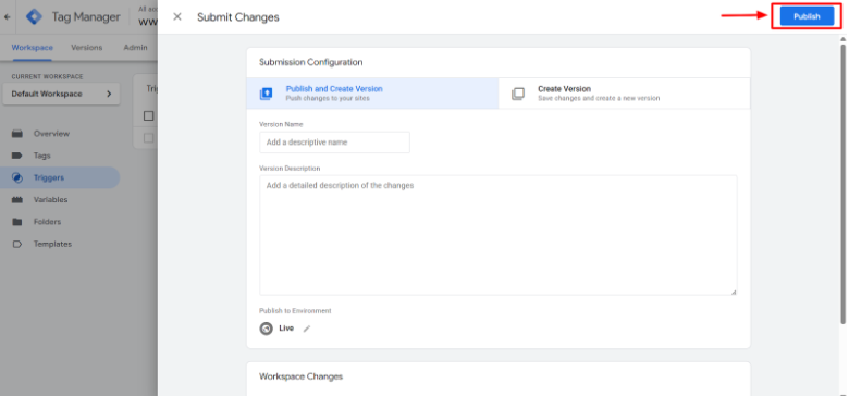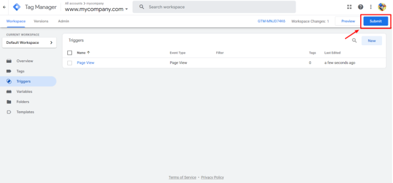 Once you have tested the tags, select Submit in the Tag Manager interface.