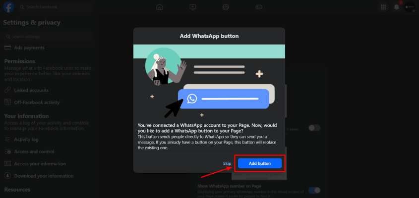 Here’s how you link your WhatsApp Business number to your Facebook Page when using a computer (browser).