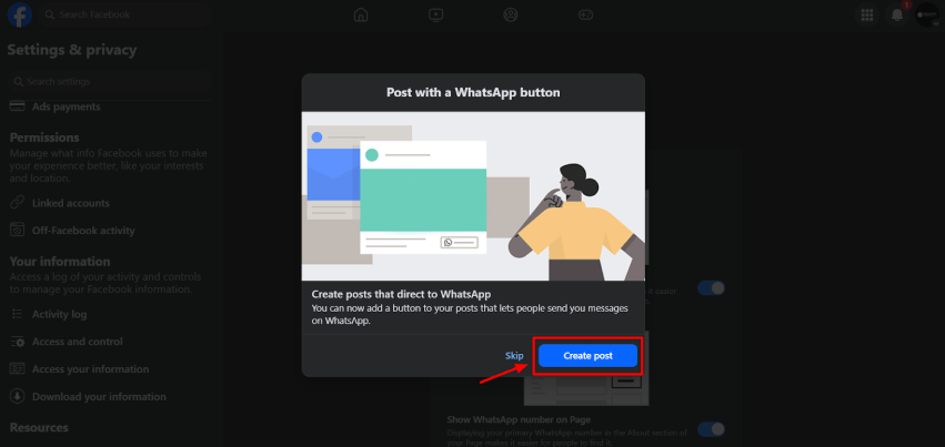 Now, you can add a button to your posts that lets people send you messages on WhatsApp. You can also skip this step.