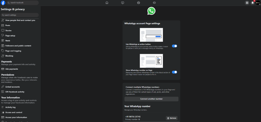 You’re done. Now your visitors can message you via WhatsApp directly from your Facebook Page.