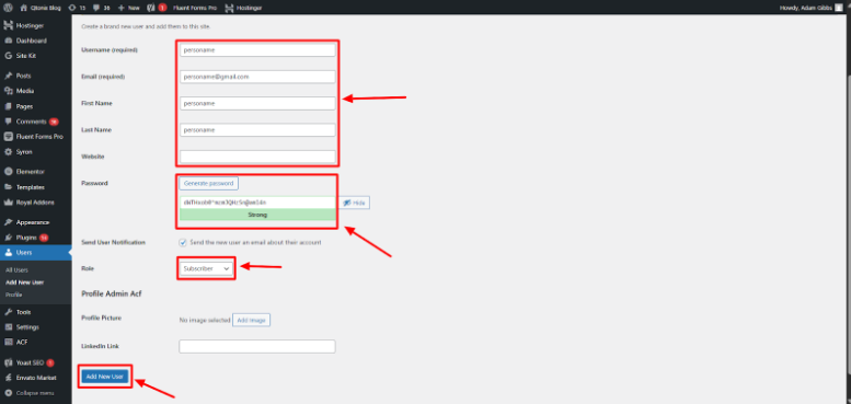 Open your WordPress account and then click “Add New User.”